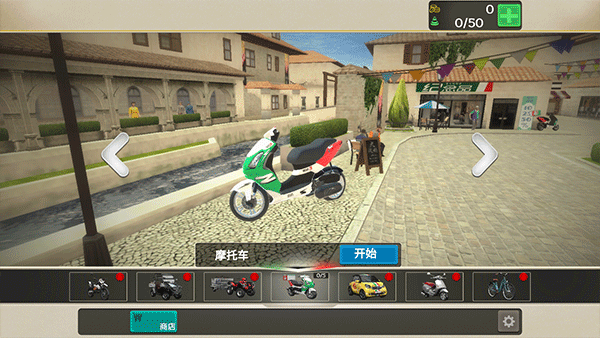 1、首先选择一辆驾驶工具,游戏刚开始你只有小摩托,等到你有了更多的钱就可以购买的别的车辆,开跑车送外卖也是有点帅的哈哈