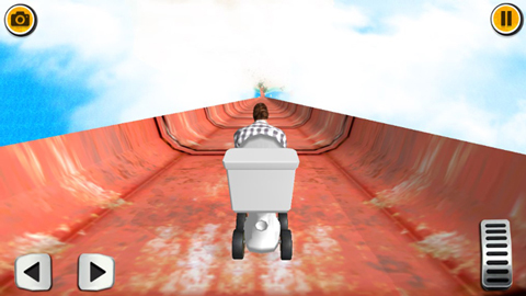 在这个游戏中,你将会驾驭所有类型的极端奇怪的赛车轮子,这些轮子在轮椅,垃圾箱,担架,厕所,购物车等坡道上玩起来都是非常不可想象的,而且还很危险。但危险的过程中同样伴随着的还有许多刺激体验,下面小编就带大家了解一下这款游戏的玩法。