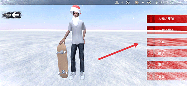 2、根据自己的喜好为角色选择衣服、裤子、鞋子和滑板后返回到游戏开始界面