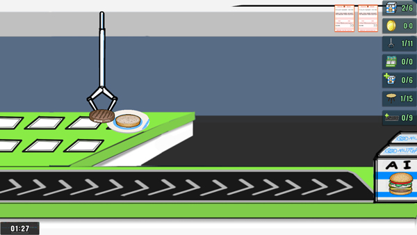 AI老爹汉堡店中文版是由B站up主M木糖M制作的一款经营模拟手游,玩家在游戏中将要经营一座汉堡店,每天都会有各种不同的顾客来到你的汉堡店点餐,你需要根据顾客的需求,在规定的时间内做出汉堡,否则就算失败。同时游戏内有着大量的制作道具,玩家可通过出售汉堡获取金币,然后升级相应设备,如机械爪、传送带、餐桌、汉堡机等,以此加快汉堡的制作速度,完成更多顾客的订单。