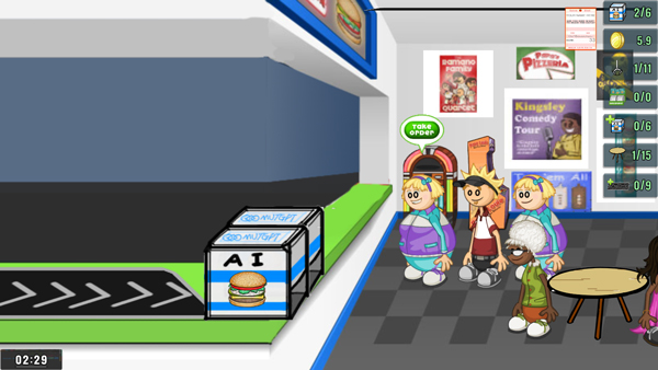 1、打开AI老爹汉堡店中文版,游戏内如图;