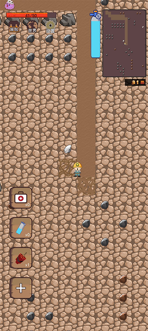 游戏中有各种道具帮助生存,氧气不足时可返回地面补充。主要目标是解救小美,同时收集矿石卖钱买道具。游戏特色包括丰富的地图、寻宝过程激动人心以及独特的钻地规则。最新版本修复了高空坠落后掉血的问题。