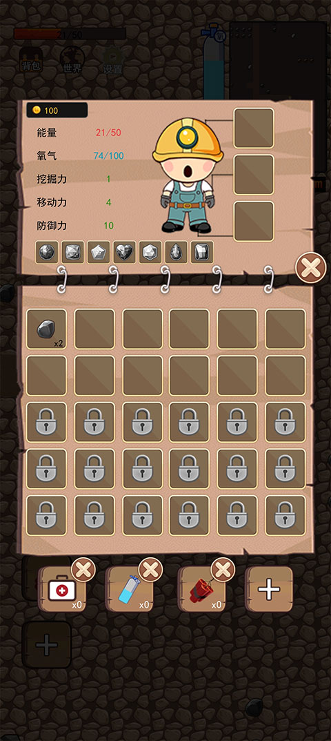 3、在左下方是我们的道具,这些道具可以让我们在地底下更好的穿行,也能保证我们在地下能呆的更久;