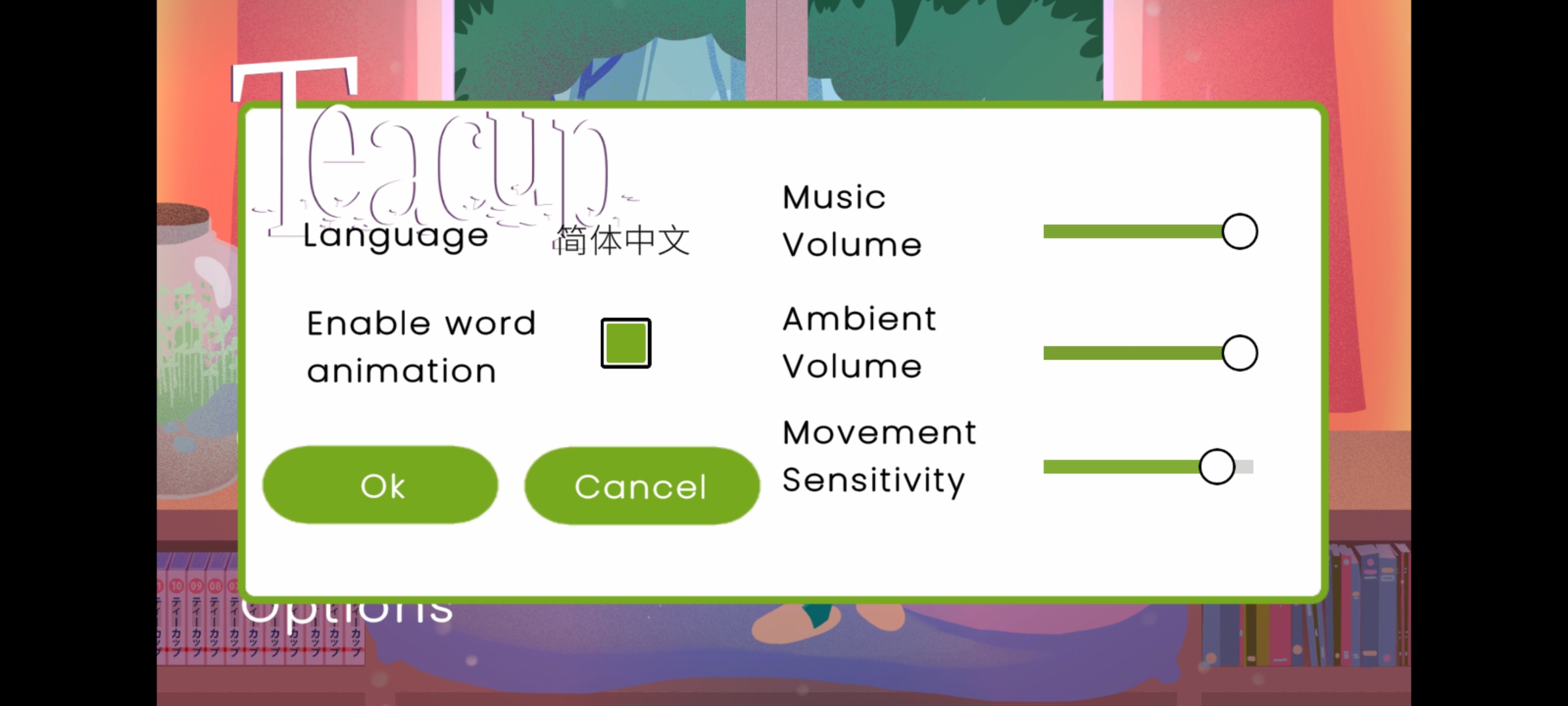 1、进入teacup游戏游戏主界面点击【Options】