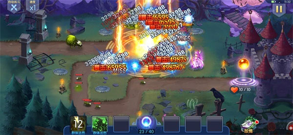 闯关战斗模式中,使用精美的英雄人物代替传统防御塔造型,可在战斗中施放技能,最多可支持六个技能同时施放,带来超强烈视觉冲击。