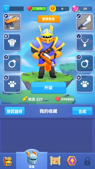 另外,该游戏还为玩家们提供的休闲的装备合成玩法,在游戏主界面的“盔甲”图标下,玩家可通过收集装备来提升角色攻击力或是防御,同时每两个相同等级的同品质武器可以合成升级为高等级武器装备,以此类推,快速完成装备收集,升级并强化你的武器装备等级,解锁天赋,开启幻想英雄的武力全开!