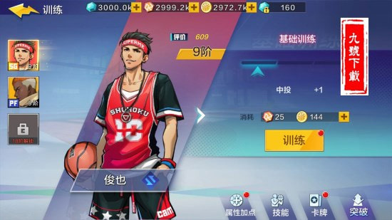 在训练里,可以自由的培养你想要的特色球员,训练包括“自由加点”“技能”“卡片”及“球员突破”