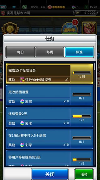 做完后,加上杂七杂八的东西,你能凑到250彩币,切忌彩币这个时候不要瞎花!!!一个字都不要用,直接去球探页,参加新手3次的五星11连抽,运气逆天可以出2个五星球员