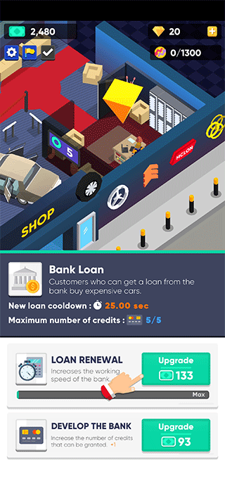 3、购买的车辆获得的金币可以用来发展你的店铺,金币在游戏中是很重要的。