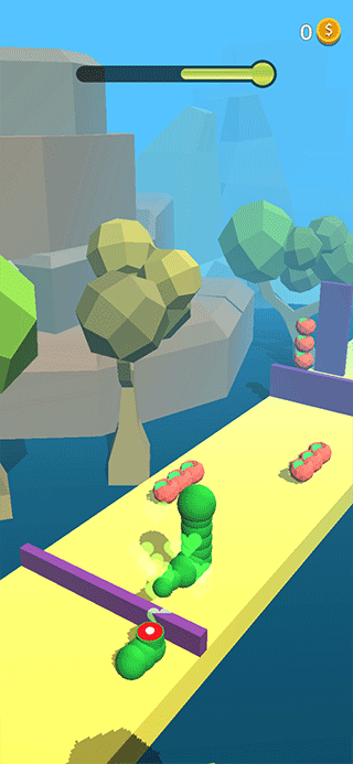 毛毛虫奇遇记是一款休闲跑酷风的手机闯关游戏,这款游戏采用了卡通3D设计风格,小巧清新,且拥有的游戏关卡也众多。而在游戏中玩家需要控制毛毛虫在赛道上冲刺,同时还要在途中及时的吃掉苹果来帮助毛毛虫的身体变得更长,这样才能挑战更高的障碍物,而且到达终点时毛毛虫的身体越长,获得的金币也会越多。