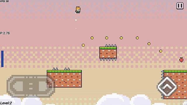 2、长按跳跃键喷气可以让狐狸跳的更高,再点击右键进行移动来获得更多金币和草莓。