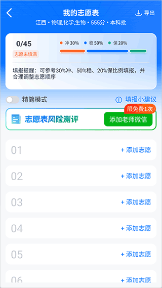 4、填写时可以添加专家老师的微信来视频指导填写,填写完成后即可提交导出