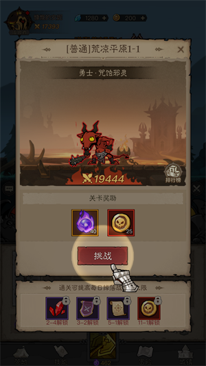 7、每次攻击都需要点击屏幕实在太麻烦太累怎么办?通关第一个boss之后即可解锁自动战斗模式,解放你的双手,让你体验轻松有趣的挂机刷宝玩法。