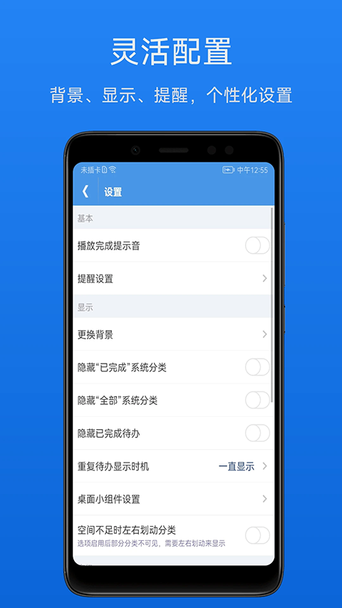 【定时提醒】可设置重复提醒,如每天、每周提醒等,支持自定义铃声