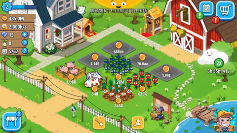 闲置农场英文名称为Idle Farming Empire,是一款卡通朋克风模拟经营手游,游戏画风简约,玩法也比较轻松自由,创新的将农场种植玩法与放置挂机元素完美整合,在这里你将以一名农场主的身份开始经营你的一片农场,通过解锁更多的土地,开发更多的作物品类,提升作物等级减少生长周期来获得收益最大化,同时各种天气的变化、辅助快速升级的道具功能的加入也让游戏更富趣味可玩性。