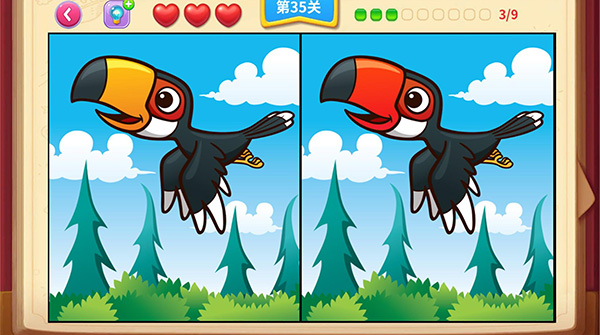一起看图找不同是一款非常有趣的找不同游戏,该游戏为卡通动画风格,丰富的关卡内容,操作简单挑战性高。每一个关卡都是不一样的图片,在两张相似的图片中,发动你的火眼金睛找出哪里不同,游戏没有时间的设置,玩家可以慢慢的找到不同,也可以追求速度,有爱心的设定,找错一处就会减少一颗爱心,每关有三颗爱心对应最后的评分,大家可以在又快又稳的基础上,尽可能三星通关,这就非常考验观察能力和眼力了,带给玩家十分刺激的挑战,感兴趣的小伙伴可以来下载游戏体验吧!