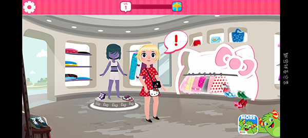 2、来到凯蒂猫的服装店铺,点击“!”接待第一位顾客。