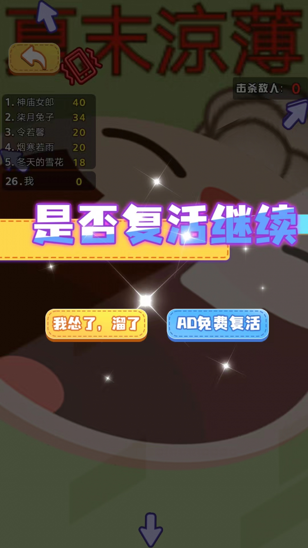 7、如果不小心被自己大的黑洞吞噬了的话,我们可以选择溜了和免费复活,