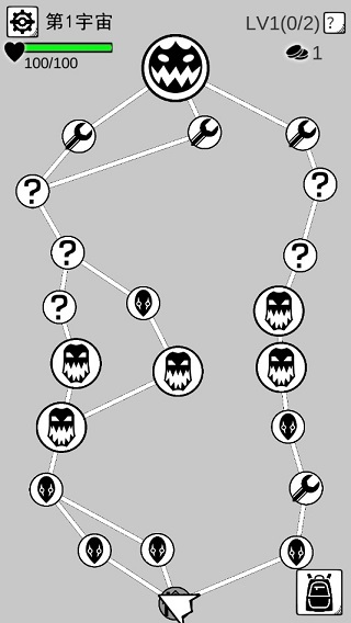 下面就是玩家要征战的宇宙地图了,基于推图式的关卡冒险,会有多条发展线路,每条线路选择对应玩家都是不小的挑战,这里凶险万分,并且由很多敌人,当然也有惊喜和惊吓。