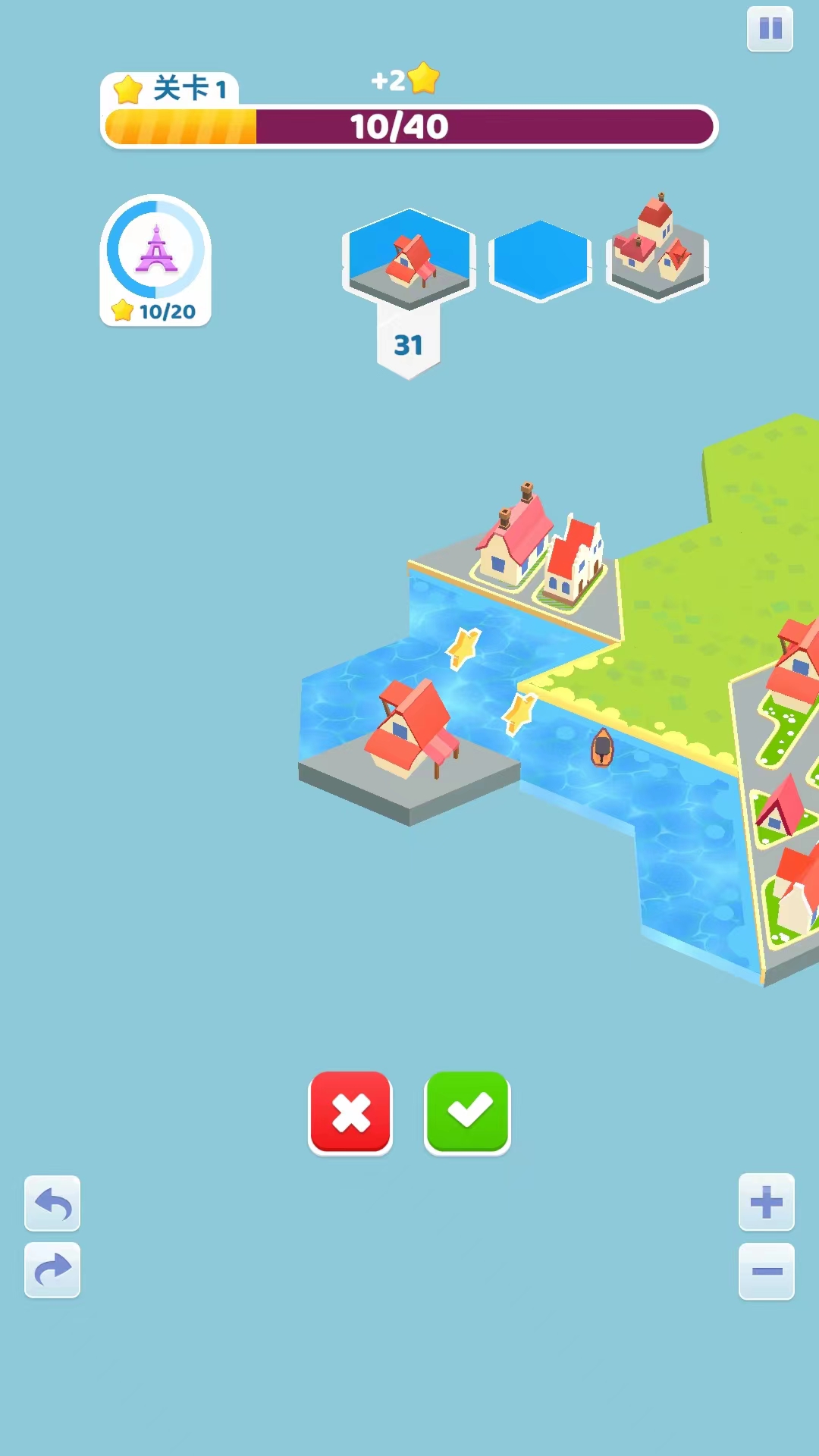 你放置的每一个板块都能为你赢得星星,随着星星数量的增加,你会解锁新的建造世界功能,如工厂、农场、石油钻井平台、纪念碑、休闲设施和其他基础设施,为你不断茁壮的世界增加多样性。