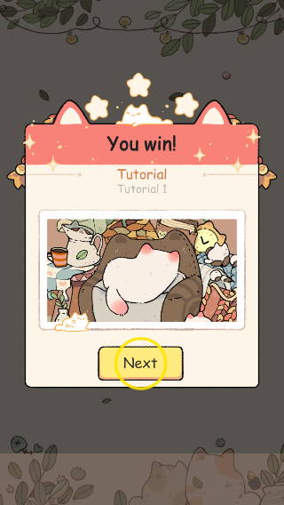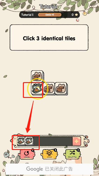1、首先玩家们在点击上方卡牌后卡牌会下移到底部的框中,栏框内一共可以储存7张卡牌,当有3张一样的卡牌时将会消除,如图中点击上方的猫咪相框则可以达成三消。