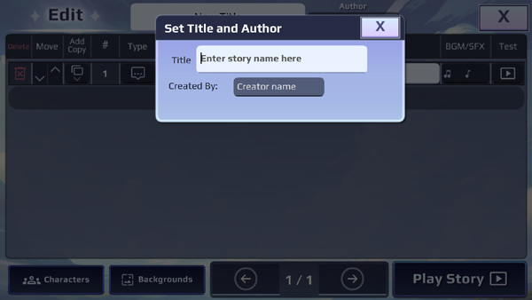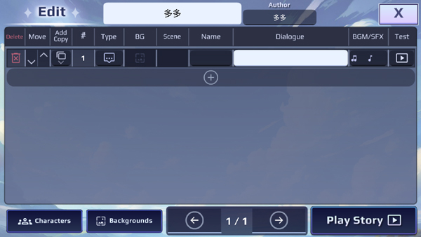 新手攻略也很简单:打开游戏后点击“new story”开始,取个名字和作者名,然后就可以开始创作了。上方是对话框和文字编辑区,左下角可以添加人物,背景可以选择或者上传自己的图片,编辑好后还可以查看效果。