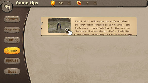 4、每一种建筑物都有不同的效果,建筑消耗一定的材料,有些建筑物会受到灾害的影响,灾害会影响建筑物的耐久性,请及时修复建筑物以免损坏;