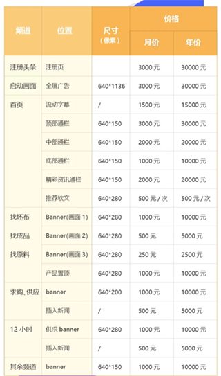 广告服务价目表