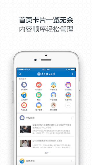 i大工app是由大连理工大学为学生和老师开发的专属校园管理手机平台,该软件整合了大连理工大学内所有的种服务资源,校概况、办公电话、学校新闻、学校地图、失物招领等方便学校师生学习生活的基本工功能,仅需要一部手机,全校的资源任你使用,使师生更便捷、高效的获取校内信息。平台会根据登录人员的身份分别展示各自相关的应用,用户也可以对应用进行个性化的设置。在平台建设过程中,会根据师生的需求、反馈及学校信息化建设推进情况,逐步丰富和完善系统功能,欢迎有需要的朋友来这下载。