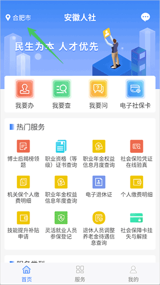 5、接着可以切换所在城市的人社平台后即可选择需要办理的事项进行点击办理