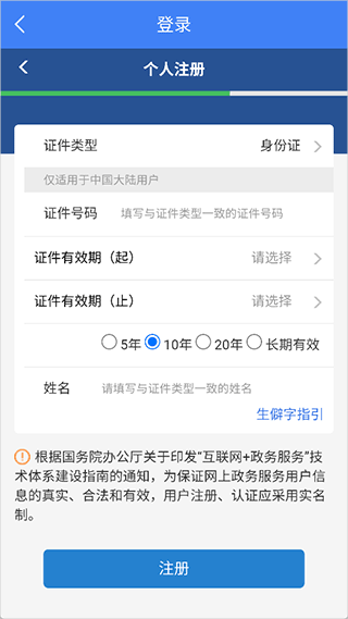 3、接着输入身份证相关信息后进行注册,注册时需要进行人脸识别认证