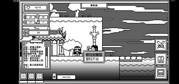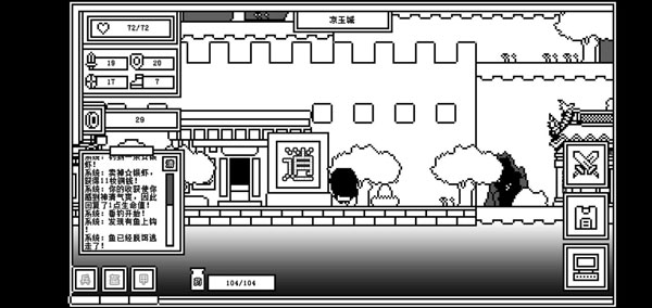 又如下图所示,你以为你看到的这个钓鱼台就是钓鱼用的?其实,的确是钓鱼用的,但他还可以钓虾,他还可以钓属性,他甚至还可以钓装备!最重要的还是钓钱,众所粥知,氪金是不可能氪金的,这个游戏是不可能需要氪金的(实际也味可滋,毕竟是要恰饭的嘛,但我更希望这个游戏能做买断制,因为个人觉得这种游戏应该不联网吧?这个,鹅,这个,应该不联网,嗯。)在封魔塔里打小小怪和大大怪都是需要投币摇脑斧机的,因此,铜币也就是游戏的根本。所以这个钓鱼台能满足各位爷的一切需要,尽管这个钓鱼台偶尔会抽风,偶尔还变态,其他的请尽情享用~