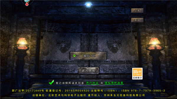 2、选择游戏区域,勾选我同意协议,点击“进入游戏”。