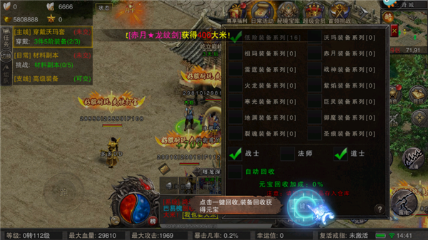 3、点击“一键回收”,装备回收可以获得元宝哦。