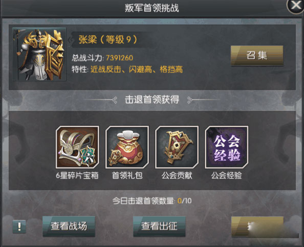 叛军军团:攻打叛军军团可以获取大量的战功、碎片宝箱和公会贡献以及公会经验。