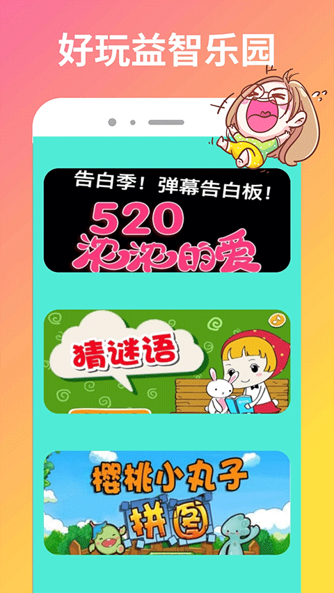 答:主要包括搞笑表情斗图、猜成语乐园、成语接龙乐园、游戏主题段子乐园以及搞笑绕口令、开心笑话和搞笑段子等娱乐内容。