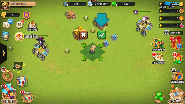 5、在你建筑工人忙的时候你也不要闲着,你可以抢钱去升级城墙,抢的钱,下线前花完,就算被人抢也不心疼。没地方花就捐公会傀儡