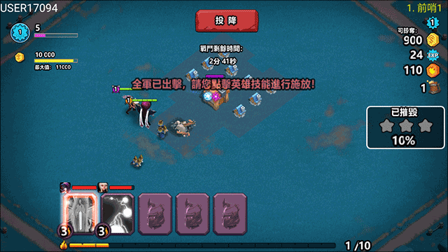 战斗开始了,玩家可以点击英雄技能加快攻击