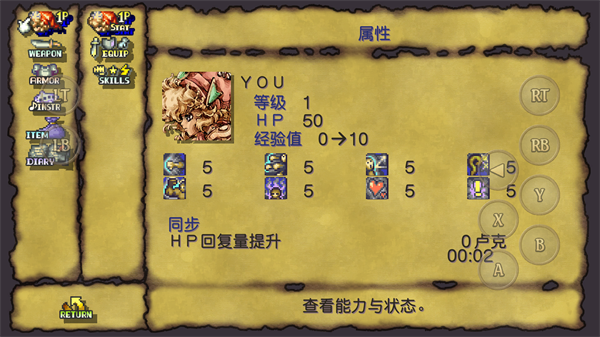 1、进入游戏内滑动屏幕选中第一个,然后点击按键B进入游戏。
