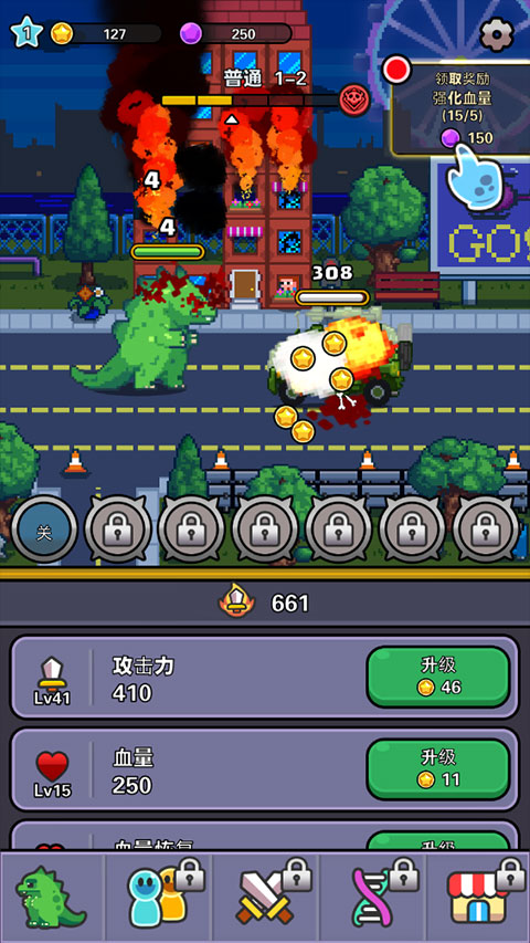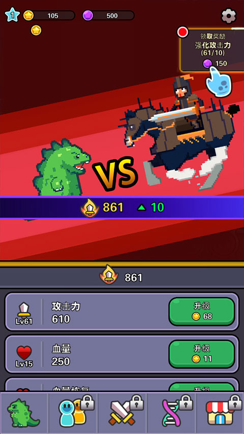 2、碰到一些防御力强悍的我们还能够对自己进行升级