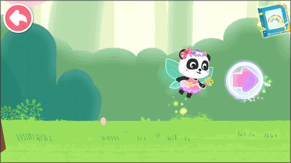 1、下载安装好宝宝巴士魔力画笔游戏,点击右边箭头可以让角色往右边走遇到任务。