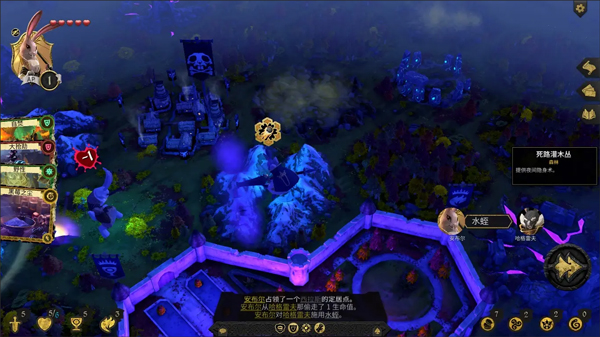 6、地牢:可以进行探索,你将随机获得金币、魔法值、宝物、随从,或者被传送到其他地牢,或者召唤一个贝恩。在夜晚来临时,全图会在随机地牢召唤一个贝恩。