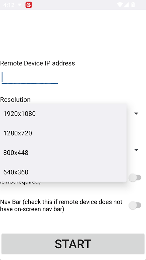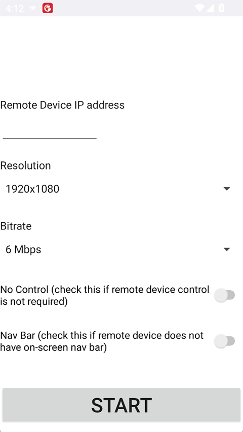 3、打开 scrcpy安卓版应用程序并输入要镜像的设备的 ip 地址。