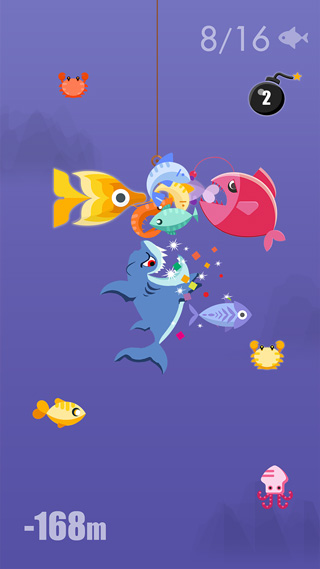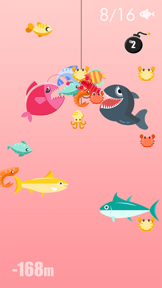 深海渔夫是一款很有趣的休闲钓鱼手游,画面清新简约,玩法简单却充满策略性。玩家需要在深海中钓不同种类的鱼,每种鱼的售价不同,卖高价鱼能赚更多金币升级渔具。随着渔具升级,可以去更深处的海域钓稀有鱼类,但也要小心那些会吃掉你鱼线上的鱼的“恶鱼”。游戏中还有炸弹工具,用来炸走这些麻烦的鱼。