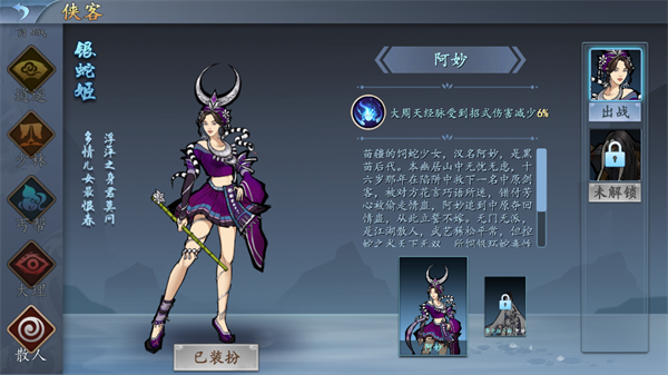 身份:苗疆饲蛇少女,江湖散人