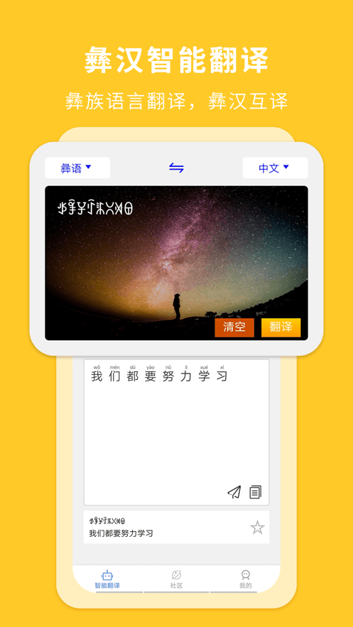 支持彝族语言翻译成汉语,更好的进行互译,轻松的进行使用;
