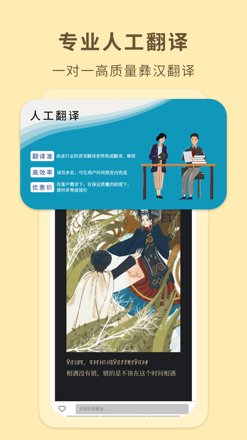 人工翻译:专业彝文翻译老师,提供一对一高质量彝汉翻译服务,翻译过程严谨,内容保密。