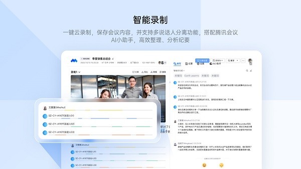 支持一键云录制,会议内容可保存并支持多说话人分离纪要,方便会后回顾。