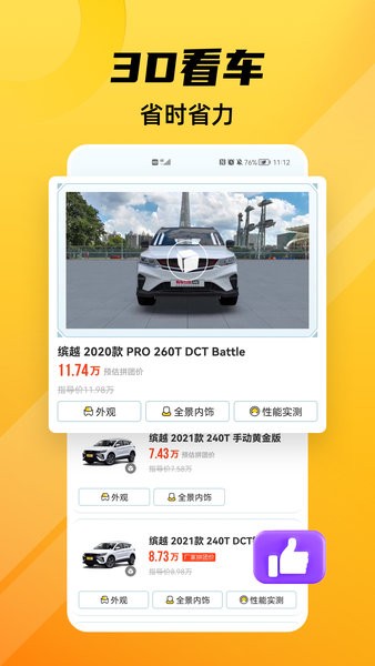 车型页支持视频、3D、内饰VR、图片多维度看车