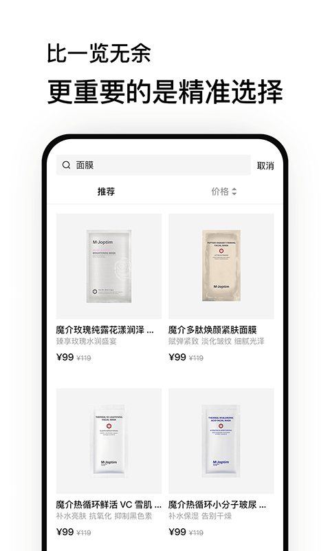 魔介商城是一款提供化妆护肤品的商城平台,分类清晰明了,实时上新,精选推送,介绍详细,可以随你选择,清楚了解,一键下单选购,订单状态一手掌握,更可以在线分享,支持积分兑换好礼,好用又方便,满足用户的购物需求!